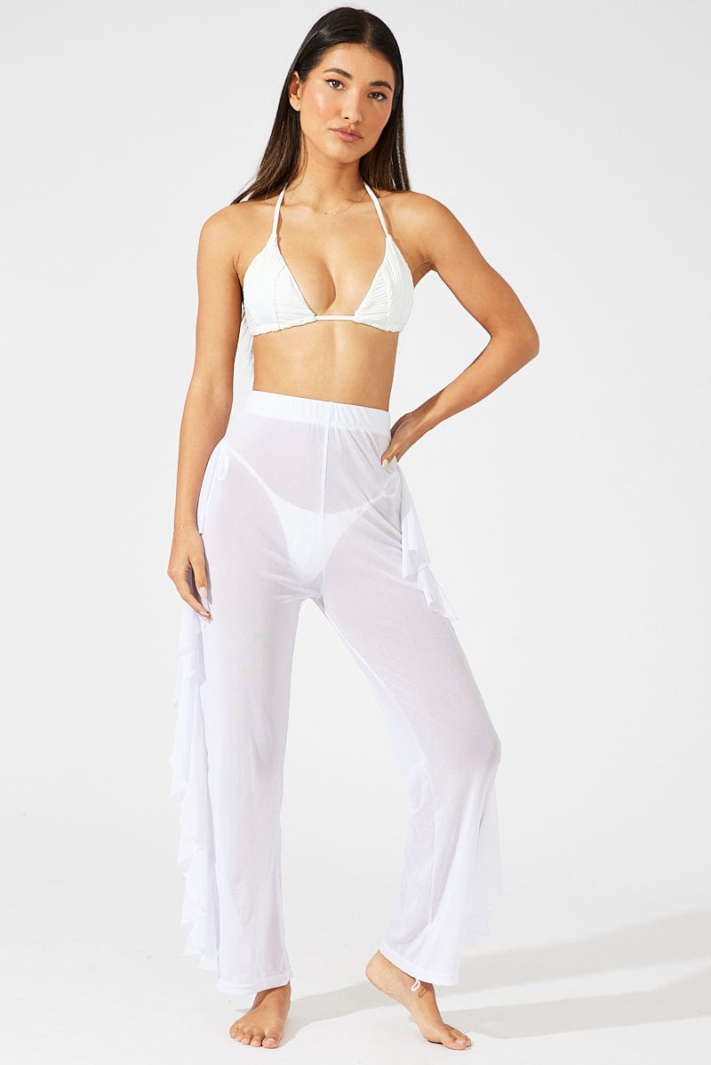 White Ruffle Beach Pants