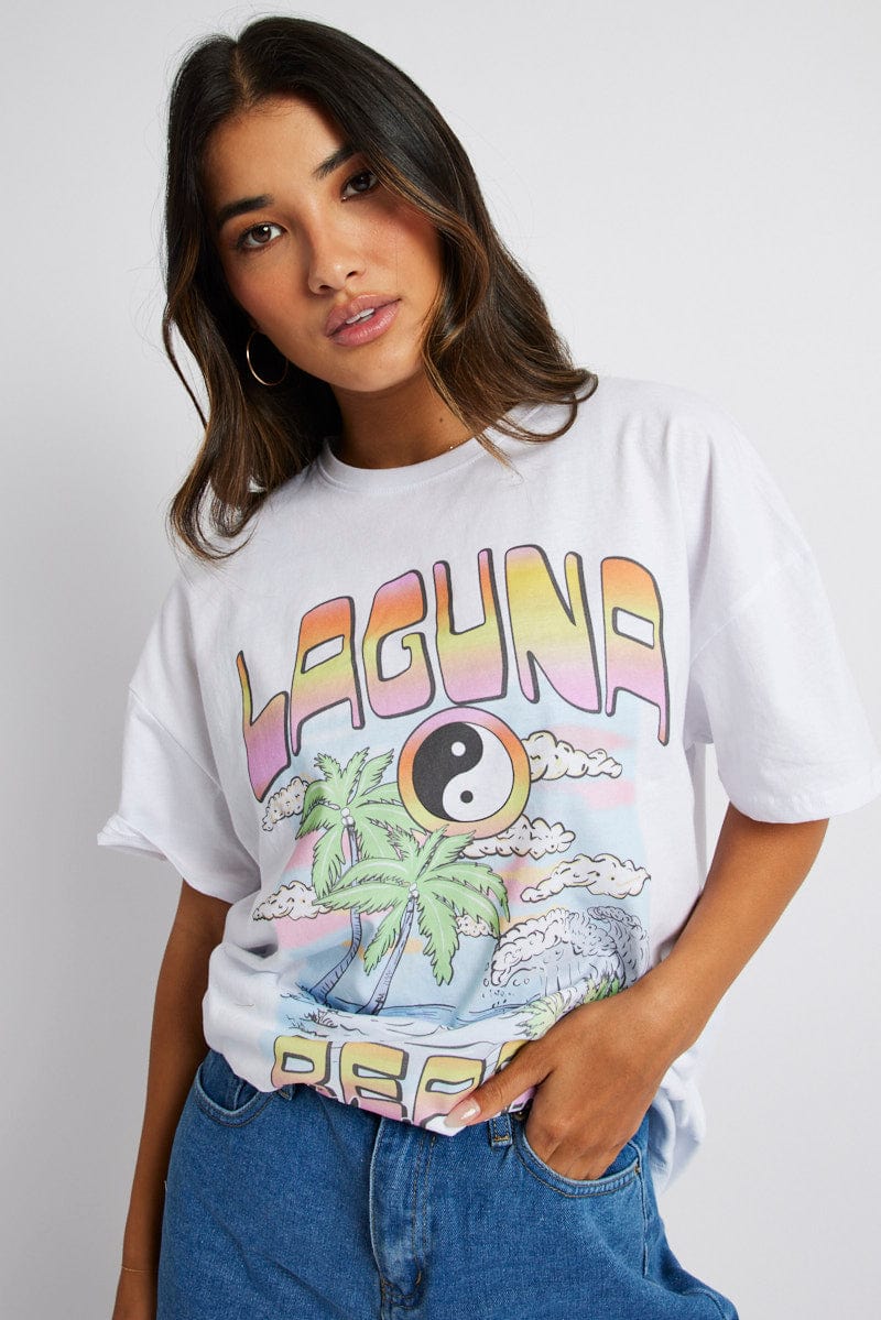 White Graphic Tee Laguna Beach Surf Slogan T-shirt